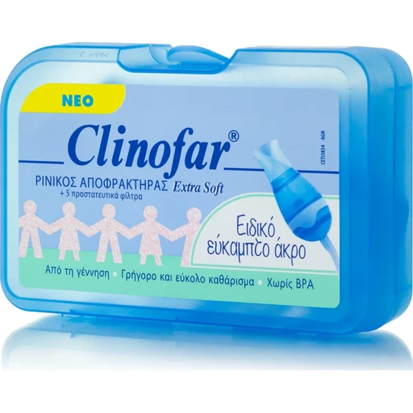 Τα νεογέννητα και τα βρέφη αναπνέουν ενστικτωδώς από τη μύτη, επομένως είναι σημαντικό οι αεραγωγοί τους να είναι καθαροί. Ανακουφίζει το μωρό σας με ήπιο τρόπο από τη βουλωμένη μύτη και την καταρροή, και απομακρύνει την περίσσεια βλέννη, βοηθώντας το να αναπνέει πιο άνετα και βελτιώνοντας έτσι την ποιότητα του ύπνου του. Διαθέτει εύκαμπτο και extra μαλακό ακροφύσιο που προσαρμόζει στη μύτη του μωρού. Το διάφανο σώμα του σας επιτρέπει να ελέγχετε την ποσότητα της βλέννης κατά την εισρόφηση. Είναι εύκολο στη χρήση και μπορεί να πλυθεί και να ξαναχρησιμοποιηθεί για να διασφαλιστεί η υγιεινή. Χωρίς BPA. Τα μικρά παιδιά δεν ξέρουν πώς να φυσούν τη μύτη τους και είναι επιρρεπή στο να αναπτύσσουν αρκετές λοιμώξεις το χρόνο. Για να μην αναφέρουμε όλες αυτές τις δυσάρεστες μικρές ενοχλήσεις που προκαλεί η βουλωμένη μύτη στην καθημερινότητα: Απώλεια όρεξης, άστατος ύπνος, κλάμα και ανήσυχες νύχτες. Ενδείκνυται για την ανακούφιση της ρινικής συμφόρησης σε περίπτωση κρυολογήματος ή ρινοφαρυγγίτιδας καθώς και για καθημερινή υγιεινή. Στη συσκευασία περιλαμβάνονται επίσης ανταλλακτικά φίλτρα που κατακρατούν τη βλέννα. Ενδείκνυται για Βουλωμένη μύτη Καταρροή Κρυολόγημα Ρινοφαρυγγίτιδα Οξεία Ρινίτιδα Ρινοκολπίτιδα Βρογχιολίτιδα Καθημερινή υγιεινή Καθημερινή Υγιεινή και Πρόληψη • Καθαρίζει τις ρινικές διόδους και απομακρύνει την πλεονάζουσα βλέννα • Συμβάλλει στην απομάκρυνση των αλλεργιογόνων (σκόνη, γύρη), των ιών, των βακτηρίων και των ρύπων Αντιμετώπιση • Ανακουφίζει τη ρινική συμφόρηση σε περίπτωση κρυολογήματος ή ρινοφαρυγγίτιδας Στη συσκευασία περιλαμβάνονται: • 1 ρινικός αποφρακτήρας • 1 θήκη με 5 προστατευτικά φίλτρα μιας χρήσης Πωλείται χωριστά συσκευασία με 20 ανταλλακτικά φίλτρα. Barcode: 3564300031852