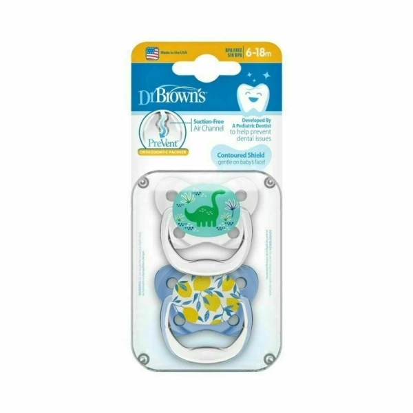 Είναι ειδικά σχεδιασμένες από παιδοδοντίατρο, έτσι ώστε να μειώνουν τις πιέσεις στο εσωτερικό της στοματικής κοιλότητας των μωρών, απομακρύνοντας τον κίνδυνο οδοντιατρικών προβλημάτων. Διαθέτουν ειδική δίοδο διαφυγής του αέρα, που μειώνει την υπερώια πίεση (δηλαδή τις πιέσεις στον βρεφικό ουρανίσκο), ελαττώνει τις αναρροφήσεις και διαχέει τον αέρα με το πιπίλισμα. Έτσι, η χρήση της πιπίλας γίνεται χωρίς το μωρό να νιώθει πίεση, χαλαρώνοντάς το. Οι ορθοδοντικές πιπίλες Dr. Brown’s™ διατίθενται σε μεγάλη ποικιλία χρωμάτων και σχεδίων, σε συσκευασία των 2 τεμαχίων.