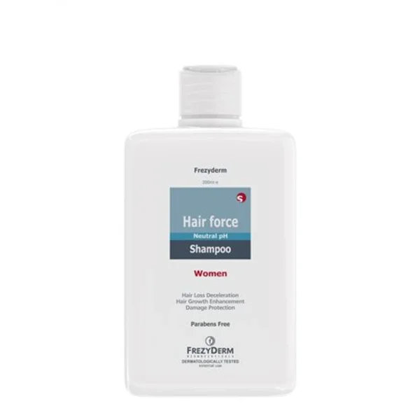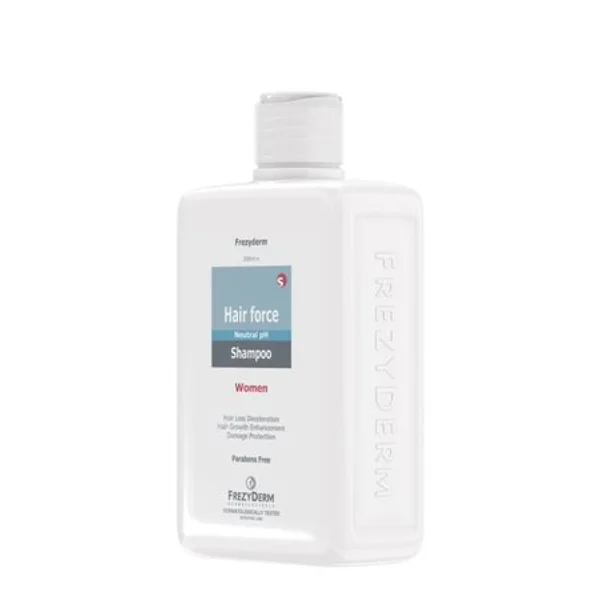 Το Frezyderm Hair Force Shampoo Women αντιμετωπίζει τόσο την εποχική όσο και τη χρόνια αντιδραστική τριχόπτωση και τα αδύναμα μαλλιά.