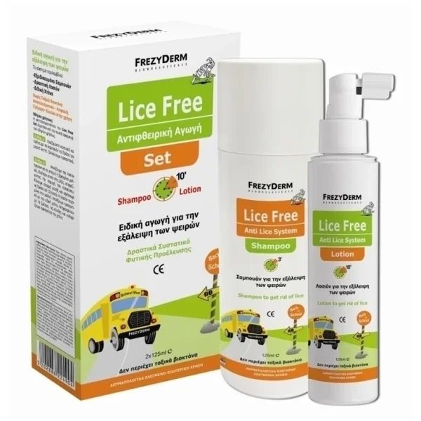 Παράλληλα, το Lice Free Set καταπραΰνει το κεφαλάκι των παιδιών από τον κνησμό και τους ερεθισμούς που προκαλεί η φθειρίαση, έχει αντιφλεγμονώδη δράση και χάρη στα Μικροσφαιρίδια που περιέχει, ως φορείς των συστατικών, προσφέρει παρατεταμένη αποτελεσματικότητα ακόμη και μετά την έκπλυση του προϊόντος. Είναι πολύ εύκολο στη χρήση και απαιτούνται μόνο λίγα λεπτά για την εφαρμογή του.