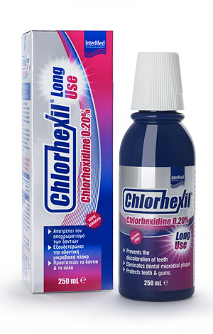 Στοματικό διάλυμα με περιεκτικότητα σε Chlorhexidine Digluconate 0.20% & Hydrogen Perexide για αποτελεσματική προστασία των ούλων και των δοντιών.