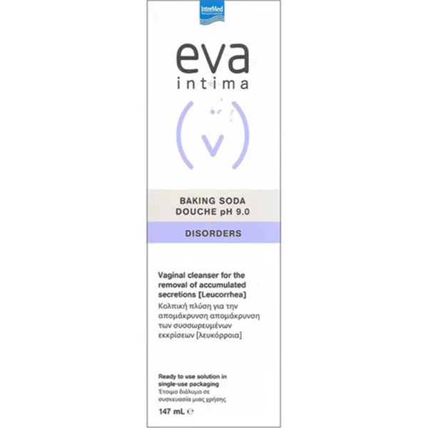 Το Eva Intima Baking Soda Douche είναι ένα ειδικά σχεδιασμένο διάλυμα για τον καθαρισμό του κόλπου και την αποτελεσματική διαλυτοποίηση και απομάκρυνση των φυσιολογικών ή παθολογικών υπερεκκρίσεων ιδίως πρωτεϊνικής φύσεως που συσσωρεύονται σε αυτόν.