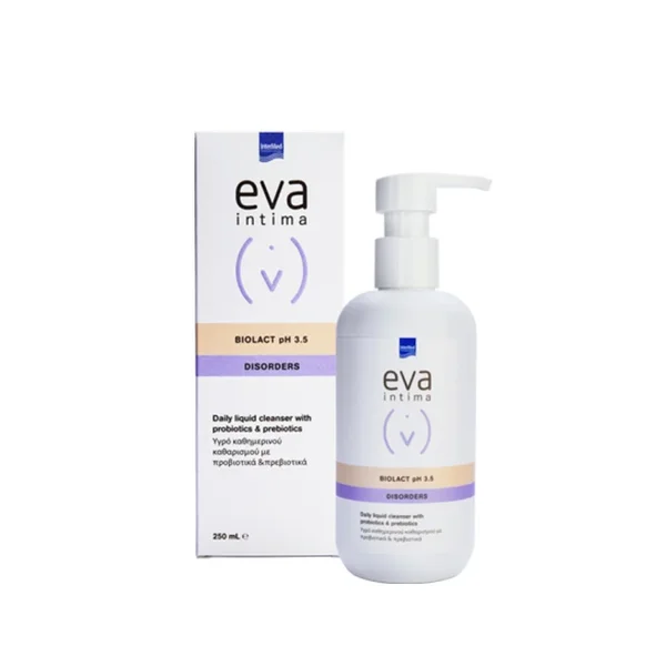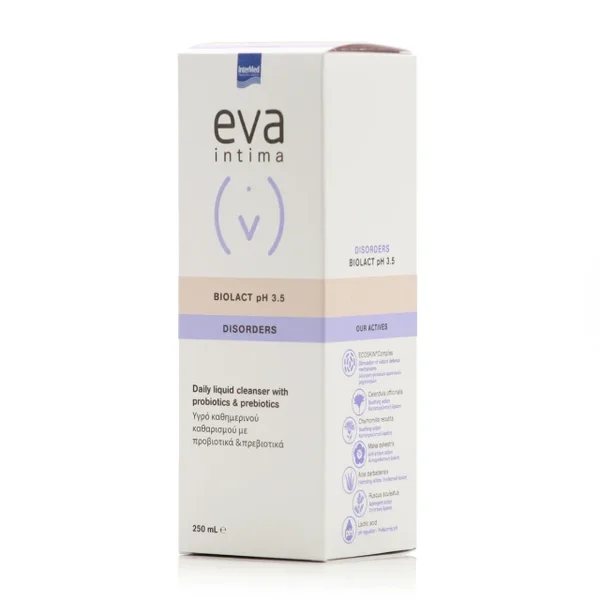 Το EVA INTIMA® BIOLACT pH 3.5 αποτελεί ένα ειδικά σχεδιασμένο υγρό καθημερινού καθαρισμού αποκαθιστά και διατηρεί τον προστατευτικό μικροβιολογικό φραγμό του δέρματος των έξω γεννητικών οργάνων.