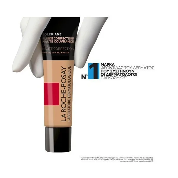 Το Toleriane Full Coverage Corrective Fluid Foundation της La Roche-Posay είναι ένα make-up πολύ υψηλής κάλυψης, δοκιμασμένο σε ευαίσθητο δέρμα με δερματικά σημάδια. Είναι κατάλληλο για το δέρμα με τάση ακμής και για το δέρμα με τάση ατοπίας.