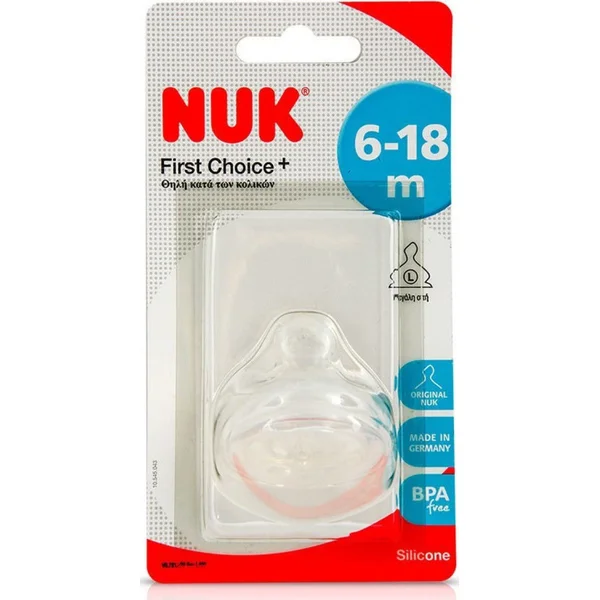 Η NUK First Choice αποτελεί εδώ και χρόνια την πρώτη επιλογή των καταναλωτών στα μπιμπερό που είναι σχεδιασμένα με βάση τον μητρικό θηλασμό. Με την θηλή NUK First Choice+ μπορέσαμε να έρθουμε ακόμη πιο κοντά στον φυσικό τρόπο διατροφής, με σκοπό την υγιή ανάπτυξη της παιδικής γνάθου και προσομοιάζοντας όσο το δυνατόν περισσότερο την αίσθηση θηλασμού από το μητρικό στήθος.