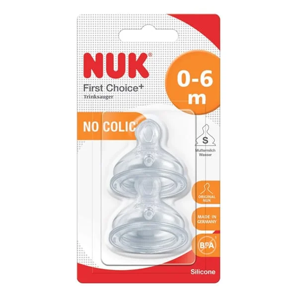 Nuk First Choice+ Θηλή Σιλικόνης 0-6m Small Φυσικό σχήμα, προσαρμοσμένο στη γνάθο: ο σχεδιασμός των θηλών βασίζεται στο σχήμα της μητρικής θηλής κατά τη διάρκεια του μητρικού θηλασμού Όσο πιο απαλή γίνεται: για οικεία αίσθηση κατά το τάισμα Πρόληψη κολικών: βελτιωμένο σύστημα κατά των κολικών Anti-Colic Air System Συμβατή με τα μπιμπερό NUK First Choice και τα δοχεία συλλογής μητρικού γάλακτος NUK Χωρίς BRA