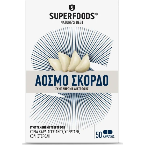 SUPERFOODS Odorless Garlic, Συμπλήρωμα Διατροφής για την Υγεία του Καρδιαγγειακού 50 κάψουλες